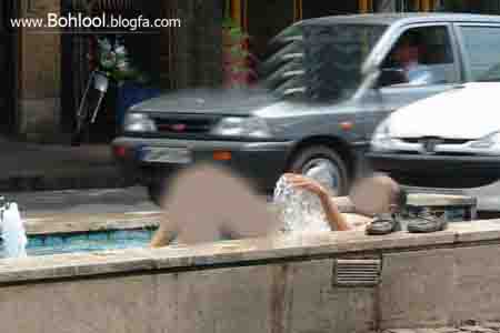 تصاویر عجیب از حمام کردن با بدن برهنه در بلوار شیراز!!